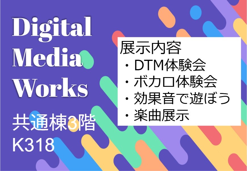 HOME > ご案内 > イベント 潮風祭について 今年度開催情報 お問い合わせ 公式HPへ DTM体験会 開催概要 主催 Digital Media Works 開催日時 両日10:00~16:00 開催場所 K318 戻る